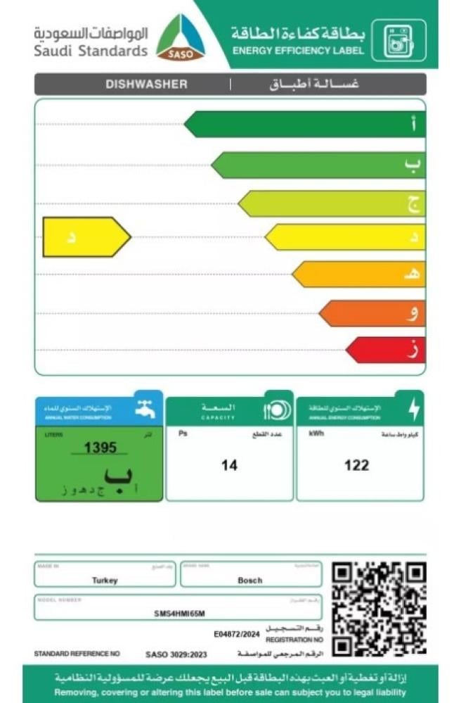- السعة: 14 إعداد للأطباق